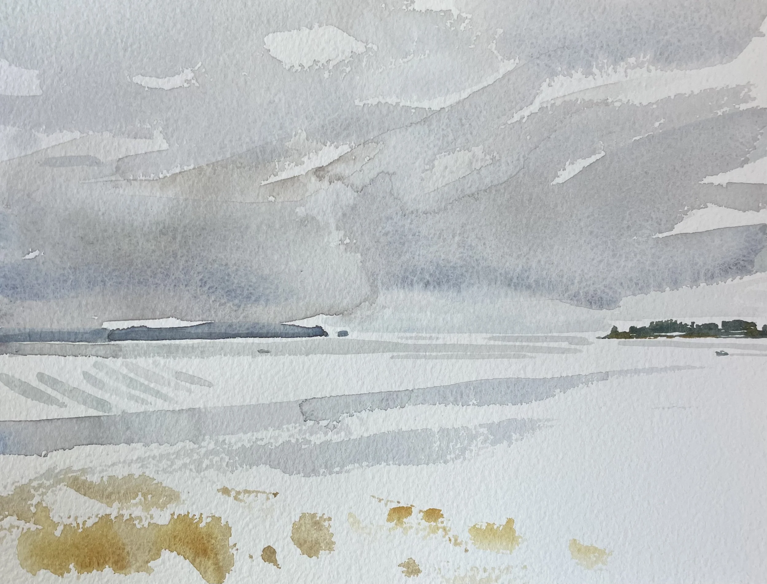 I am awe-struck by the magnificence of the shore, sea and sky. It hits my chest.